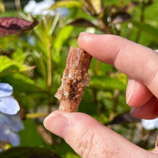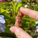 Nydelig liten flat Mandarinkvarts (Tangerinekvarts) gruppe på 38g og er 6,5x3,7x1,5cm. Det er den krystallen på bildene du får hvis du bestiller denne. OBS: Små biter kan falle av i frakt.