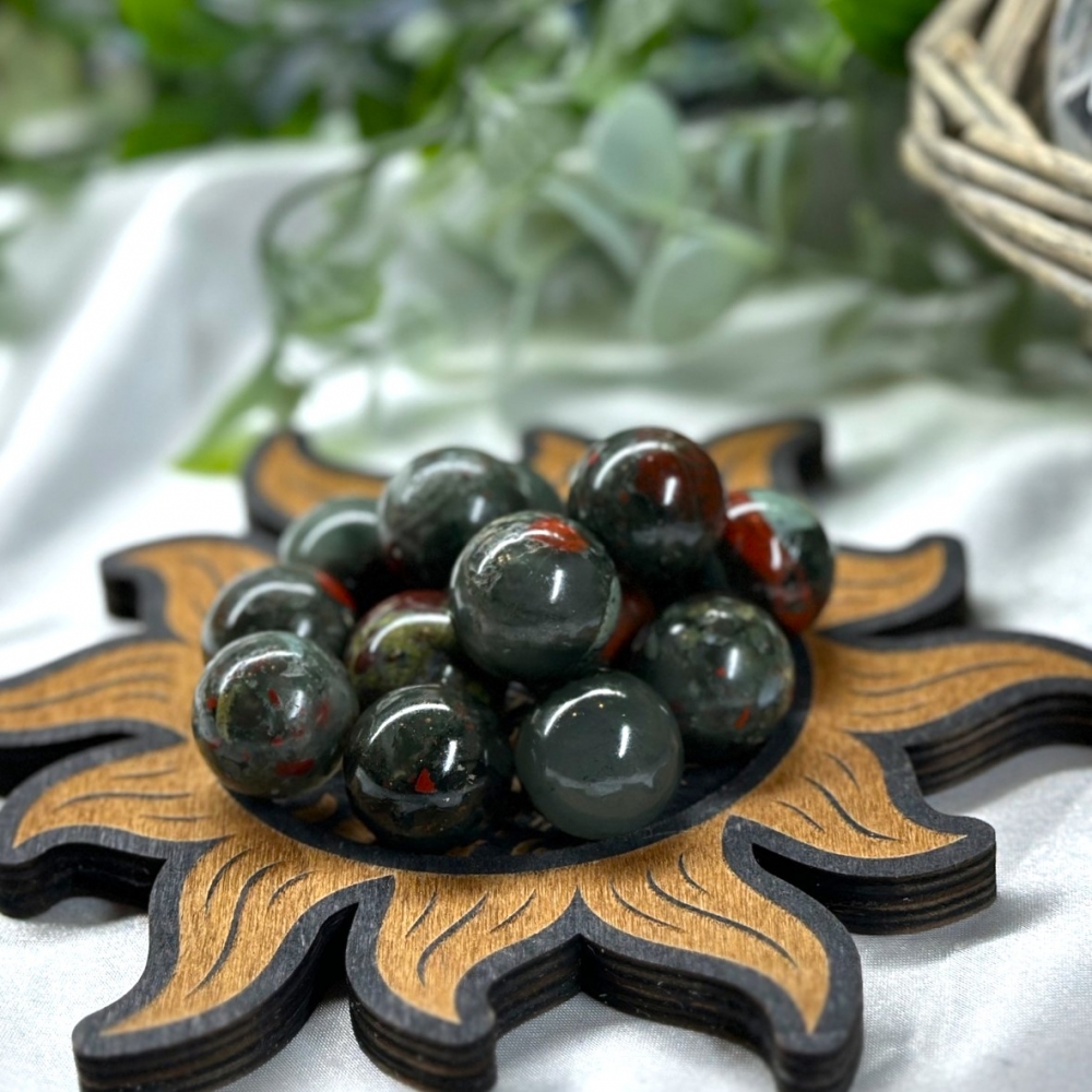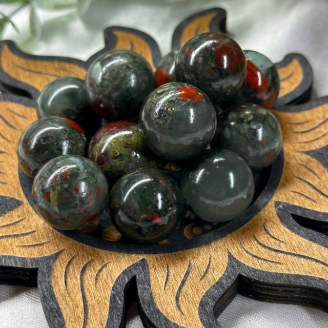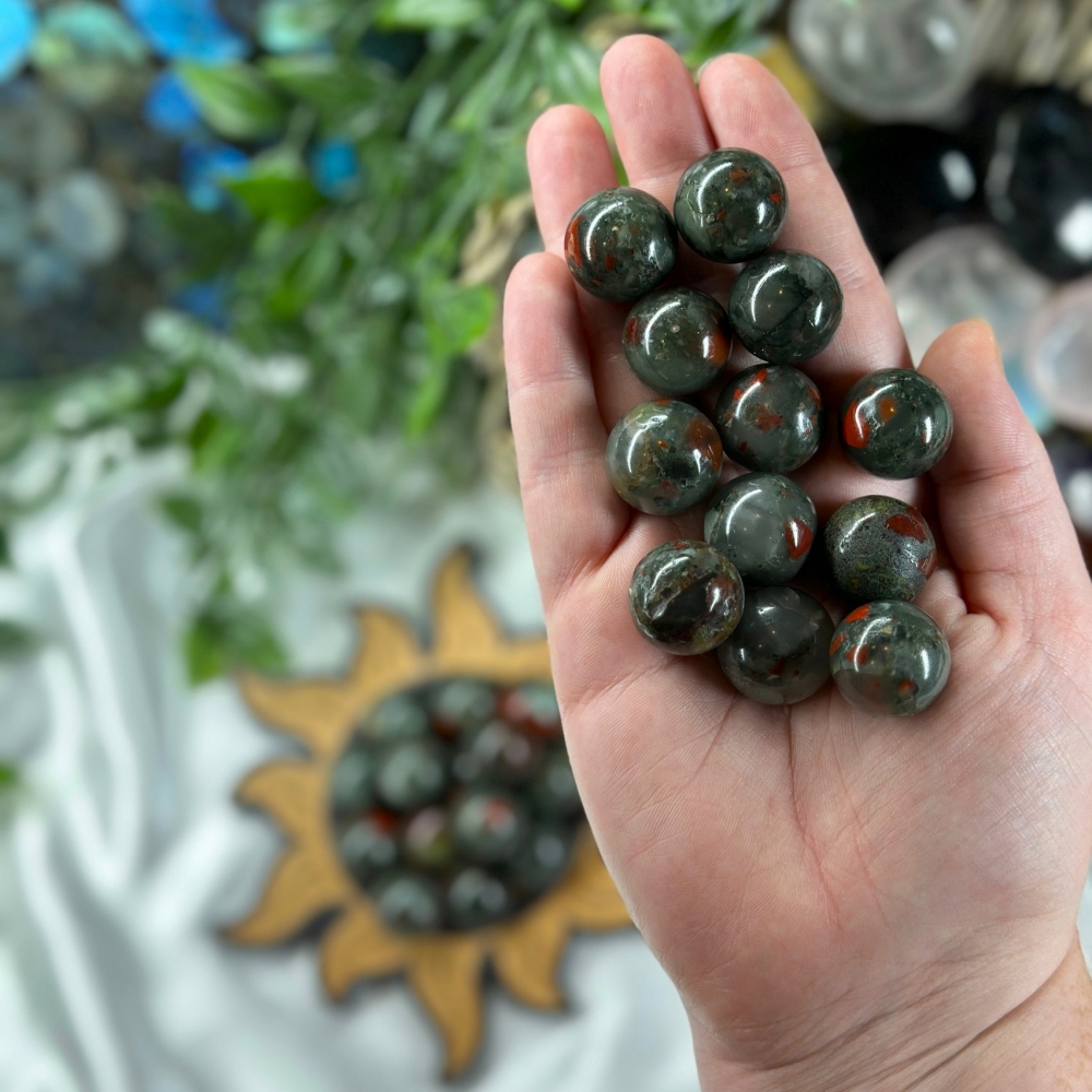 Afrikansk Blodstein/Steonitt mini kuler på 1,8-2cm. **Små merker, flate overflater forekommer på disse.