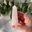 Nydelig Hvit Kalsitt tårn på 124g og er 7,4cm høy. Det er den krystallen på bildet du får hvis du bestiller denne.