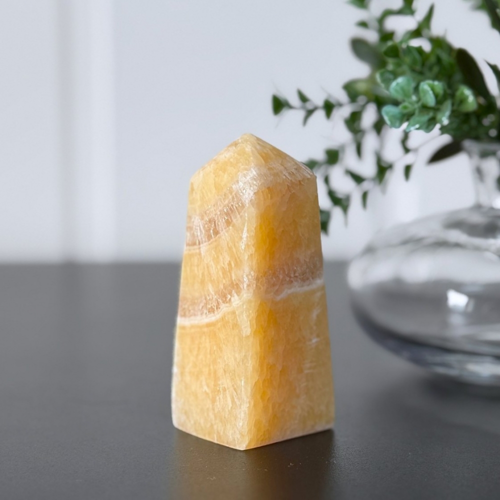 Oransje Kalsitt er som en liten sol i steinform, varm, livlig og full av energi. Dette er en krystall som vekker livsgnisten og minner deg på å føle, skape og leve litt mer fritt.