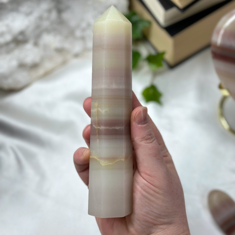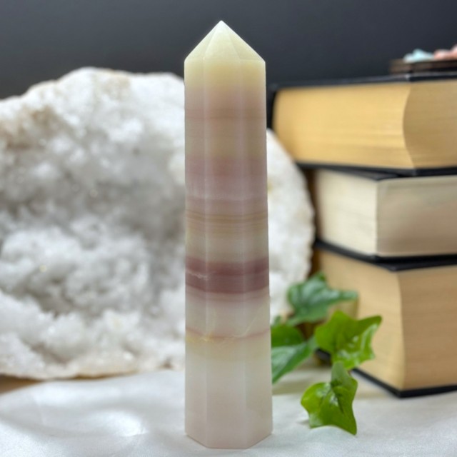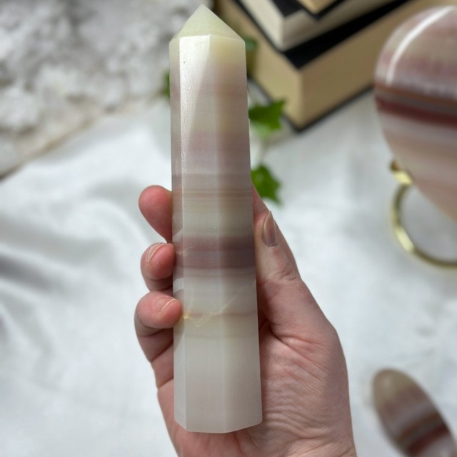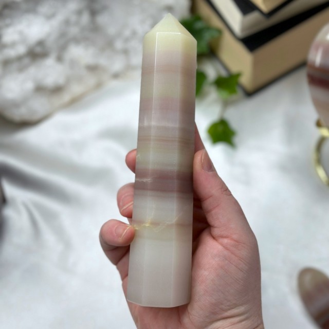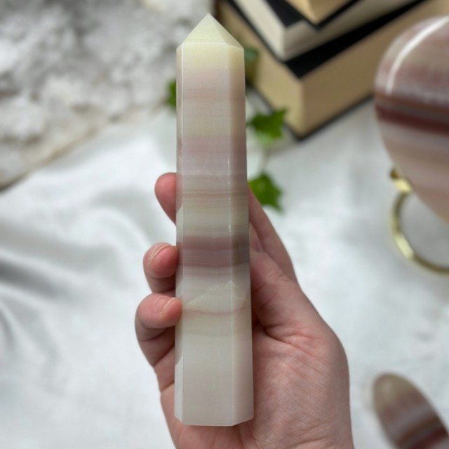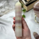 Nydelig Rose Kalsitt tårn på 10,1cm og veier ca 246g. Det er den på bildene du får hvis du bestiller denne. Små minimale merker forekommer.