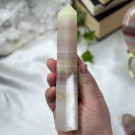 Nydelig Hvit Kalsitt tårn på 124g og er 7,4cm høy. Det er den krystallen på bildet du får hvis du bestiller denne.