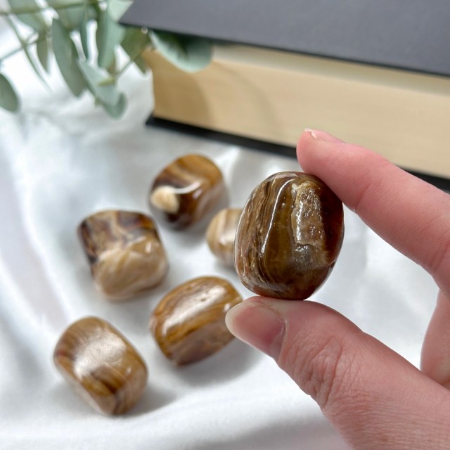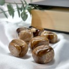 Nydelig tromlet Sjokolade Kalsitt! Disse er så utrolig fine, de har en hovedfarge som er brun, men det svirvler med lysebrun og mørkebrune farger i dem. Disse ca 20-30g per stk.