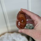 Karneol er en varm og livlig krystall som gir energi, kreativitet og selvtillit. Den beskytter mot misunnelse og frykt, og hjelper deg å finne tilbake til lidenskap, glede og handlekraft i hverdagen.