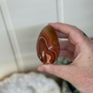 Nydelig juicy Karneol formet som et egg. Dette er5,3x3,5cm og veier ca 81g. Det er den krystallen du ser på bildene du får hvis du bestiller denne. OBS: Bildene er tatt i studiolys.