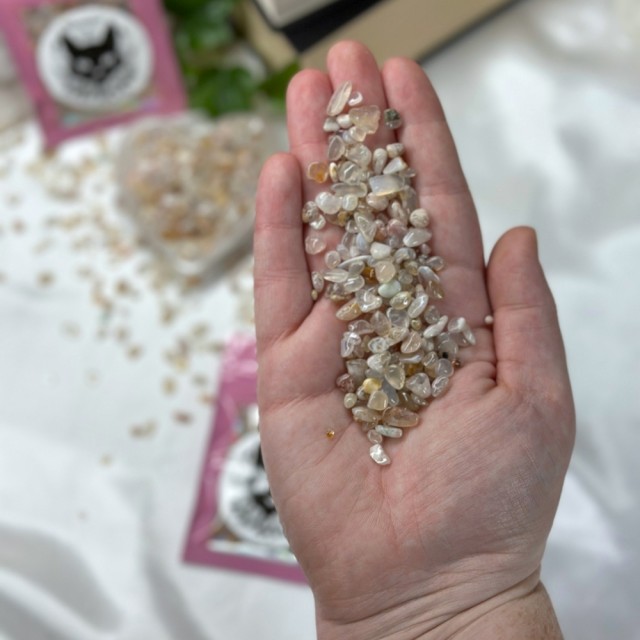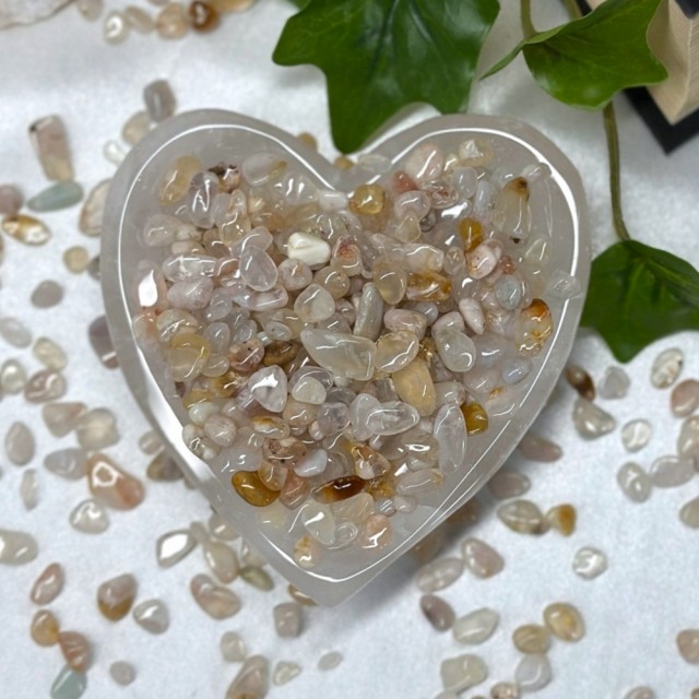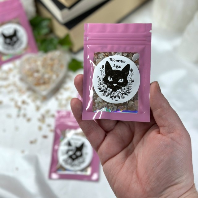 Vakker Blomster Agat krystallchips i 30 grams poser. Disse kan brukes til dekorasjon i hjemmet ditt eller i hekse-spells.