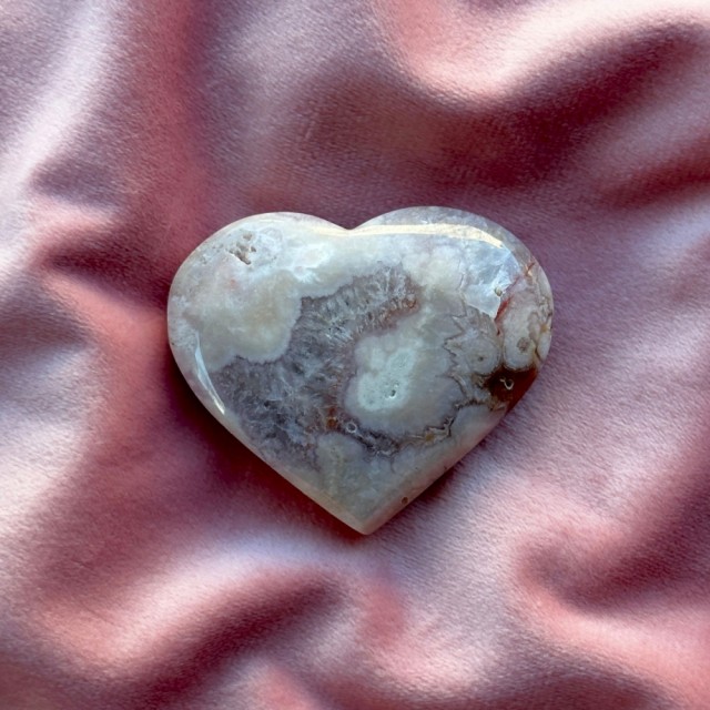 Lite Blomster Agat hjerte. Dette veier ca 30g og er 3,8x4,2x1,3cm. Små merker forekommer.