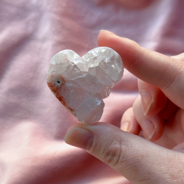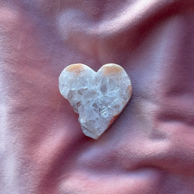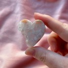 Et hjerte skapt av tid, jord og magi. Denne naturlige agaten med glitrende drusy krystaller bringer ro, klarhet og jordende energi inn i rommet ditt – et symbol på naturens skjønnhet og hjertets indre lys. Små merker forekommer. Stand medfølger ikke.