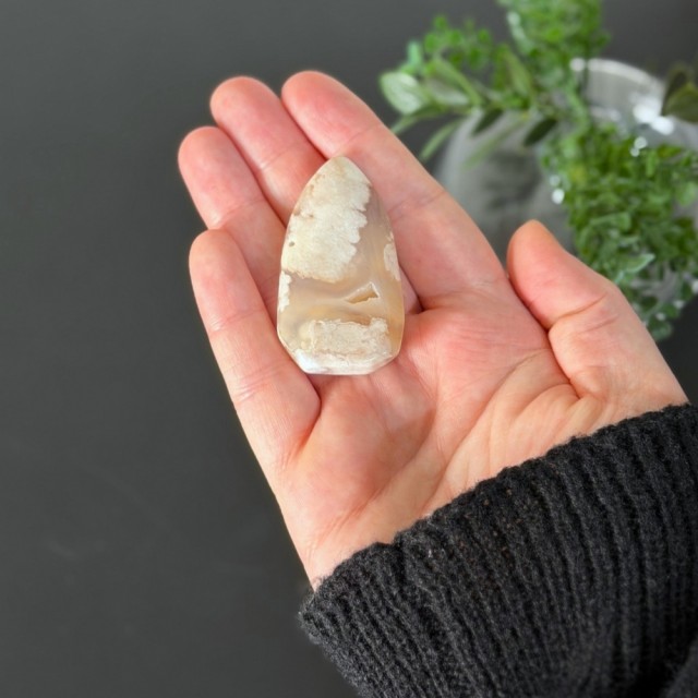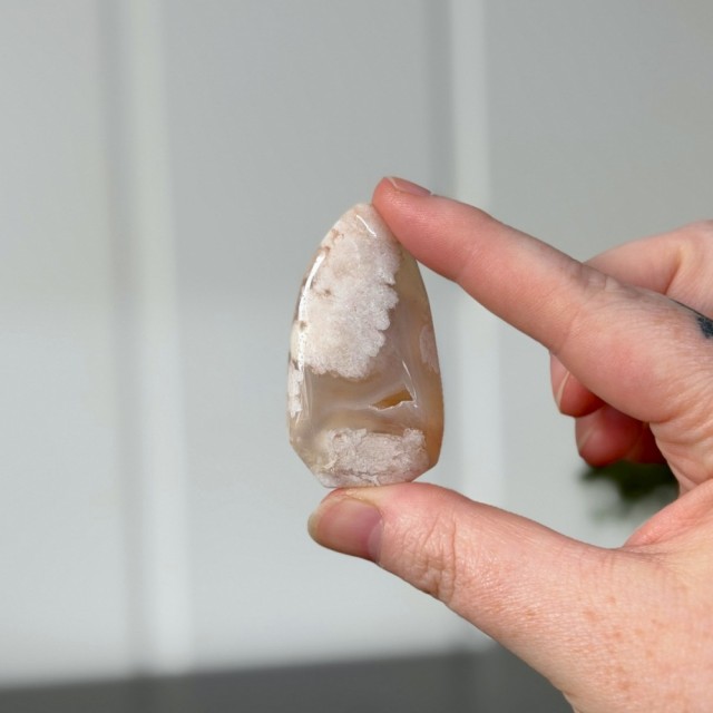 Blomster Agat minner deg om livets reise - fra frø til full blomst. En krystall for selvvekst, glede og nye begynnelser, som hjelper deg å blomstre i ditt fulle potensial. Denne er 5,3x3x1,2cm og veier 30,6g.