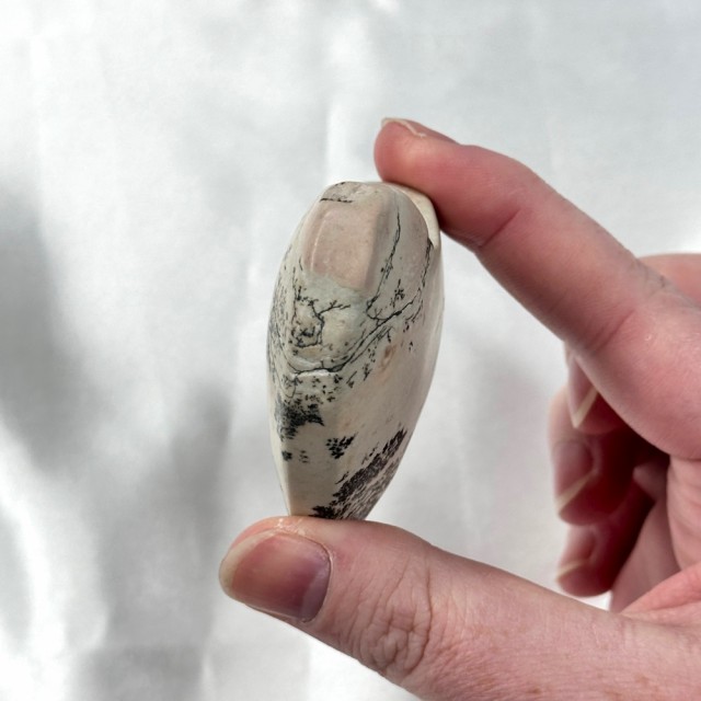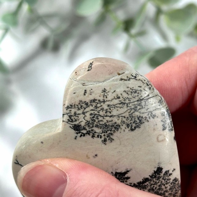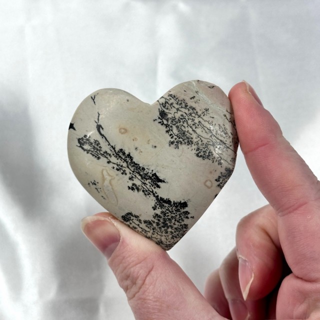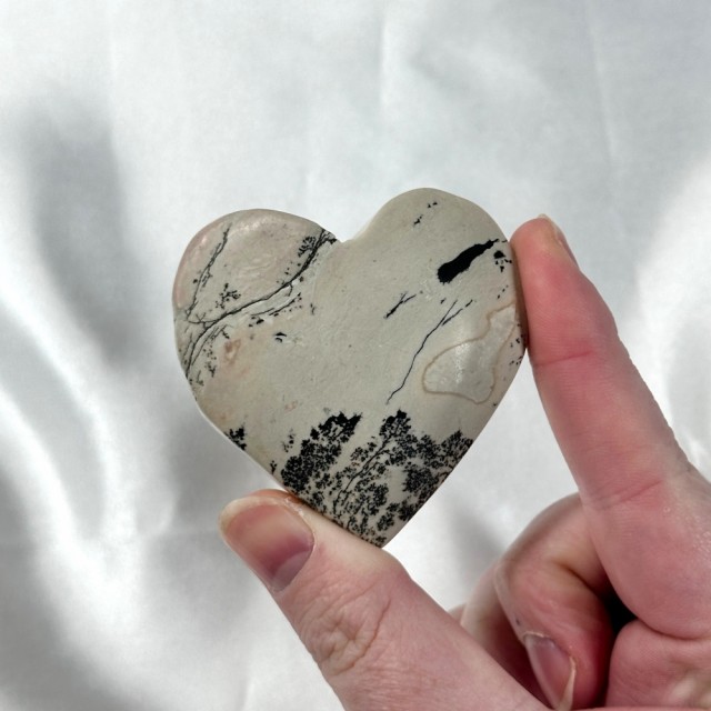 Nydelig Dendrit Jaspis/Bilde Jaspis hjerte. Dette veier ca 151g og er 6,4x5,7x3cm.