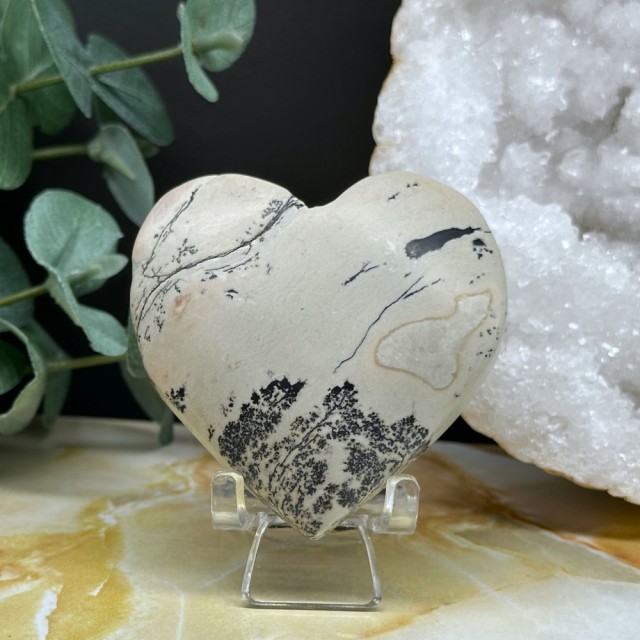 Dendrit Jaspis/Bilde Jaspis hjerte. Dette veier ca 94g og er 5,4x4,9x25cm.