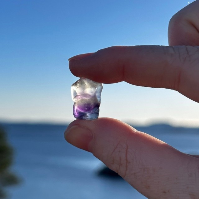 Kjempe søt Lilla/Blå Fluoritt Mini Gravidkropp. Denne er ca 1,7cm høy.