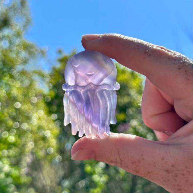 Supersøt Fluoritt Jellyfish! Denne er ca 5,2cm lang. Det er den på bildet du får hvis du bestiller denne.