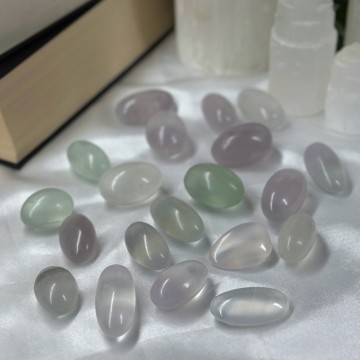 Lys Candy Fluoritt tromlet. Disse er ca 19-40g og 3-4cm. **Redusert pris pga små merker kan forekomme. Tilfeldig plukket!