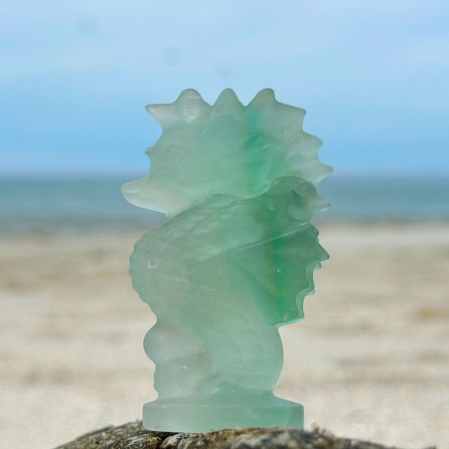 Blå Aragonitt er en beroligende stein som minner om stillheten i havet. Den lindrer stress, styrker kommunikasjon og bringer fred, klarhet og egenkjærlighet. Dette tårnet er 107g og 9,1cm høyt.