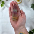 Regnbue Fluoritt tårn på 136g og er 10,8cm høy. **Redusert pris pga står litt skeivt.