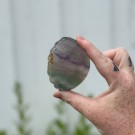 En vakker Grønn & Gul Fluoritt kule på 5cm og 215g. Med en lilla stripe som tilfører mystikk og harmoni. Symbol på balanse, klarhet og livsglede.