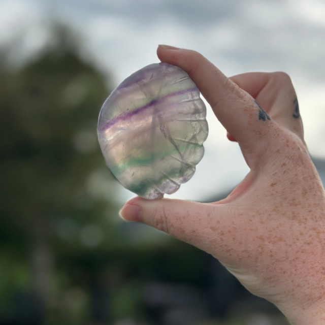 Fluoritt renser sinnet og hjelper deg å tenke klart. Den støtter deg når du føler deg overveldet og hjelper deg å finne indre orden i kaos. Disse passer ca 16-17cm - små naturlige merker forekommer.