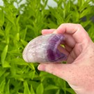Feather Fluoritt hjerte. Dette er 4,6x5,3x1,9cm og veier ca 81g. Små naturlige merker forekommer.