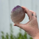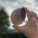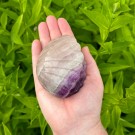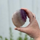 En vakker Grønn & Gul Fluoritt kule på 5cm og 215g. Med en lilla stripe som tilfører mystikk og harmoni. Symbol på balanse, klarhet og livsglede.