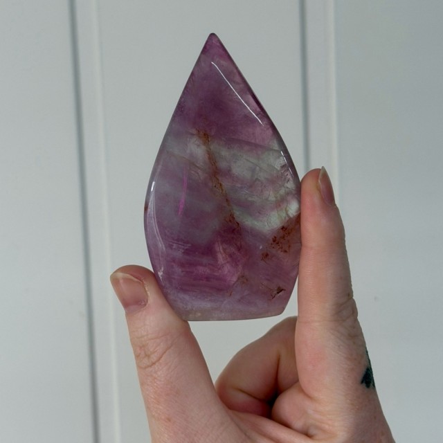 Rosa Fluoritt er en mild, men kraftfull stein for hjertet. Den bærer en rolig energi som hjelper deg å lande i følelsene dine uten å bli overveldet.