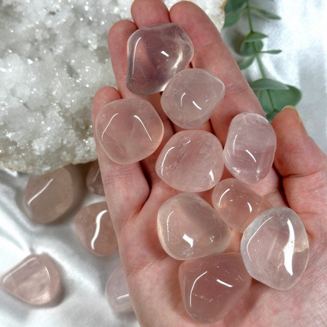 Rosa Girasol tromlet fra Madagaskar. Disse er medium/store i størrelsen. Ca 2-4cm. Naturlige merker forekommer.