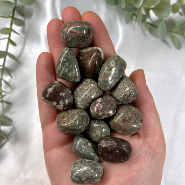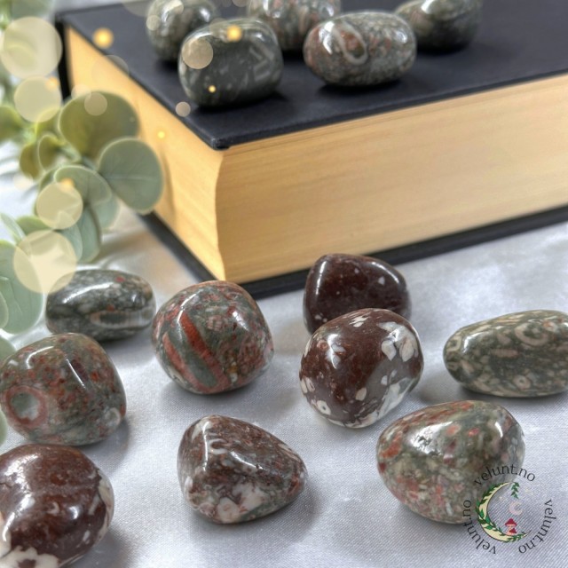 Fossil Jaspis er assosiert med rotchakraet. Denne steinen sies å hjelpe deg med å koble deg til energien og sikkerheten til Moder Jord, og roter deg fast inn i kraften som kommer fra hennes kjerne. Brukt som støtte, gir denne steinen avslapning, stabilitet, velvære og ro til bæreren. Den forynger og styrker, og gir en følelse av tilfredshet og fred.