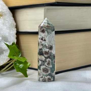 Grønn Blomster Jaspis er en stein i hjertechakraet som hjelper til med aktivering og flyt av energi gjennom hele kroppen. Når inderlige følelser begynner å sirkulere, vil du merke at du begynner å åpne opp og bli mer i kontakt med din mykere side. Denne rene versjonen av deg selv vil være mer i tråd med dine behov og vil hjelpe deg med å presse gjennom emosjonelle blokkeringer.