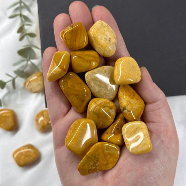 Gul Jaspis har en myk og rolig energi. Den sies å hjelpe oss til å håndtere de utfordringene livet byr på oss, samtidig som vi beholder et smil om munnen og viser et vennlig hjerte til verden.