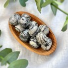 Kambaba Jaspis - en urgammel krystall fra Madagaskar, dannet av fossiliserte alger for over 3 milliarder år siden. Perfekt for jording, indre ro og følelsesmessig balanse. En kraftfull stein med jordens eldste energi. Disse er ca 1-3cm.