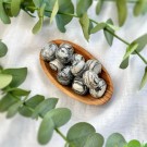 Dalmatiner Jaspis fra Pakistan, disse flotte tromlede steinene er ca 2-3cm og er "chunky".