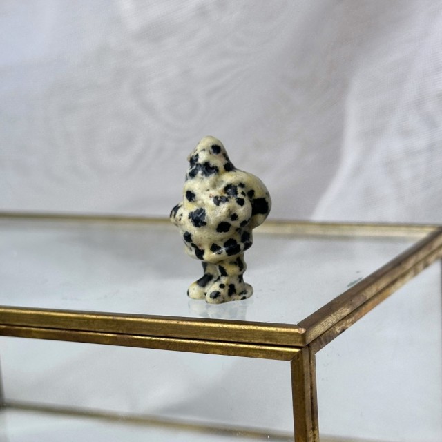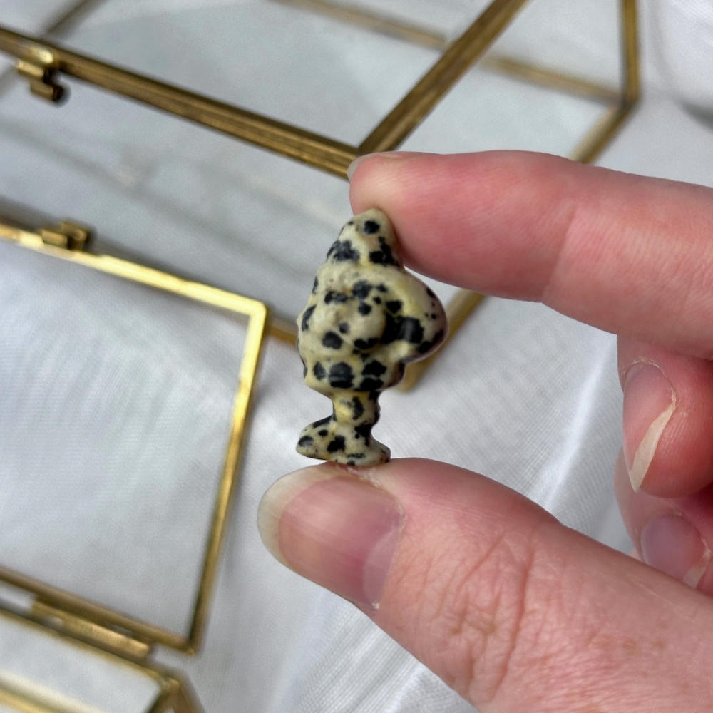 Søt mini Dalmatiner Jaspis julenisse med pakker. Denne er ca 2,6cm høy.