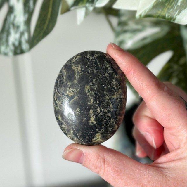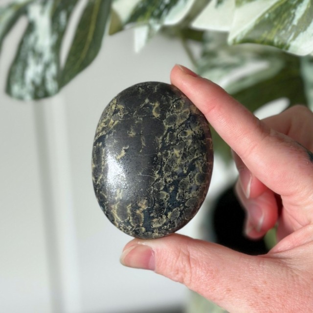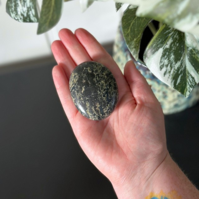 Orbikulær Sjø Jaspis bærer havets rytme i seg - en krystall for ro, balanse og emosjonell healing. De vakre sirklene minner oss om livets sykluser og vår indre styrke. Denne veier ca 934g og har målene 12,4x9,1x5,1cm. Naturlige merker forekommer.