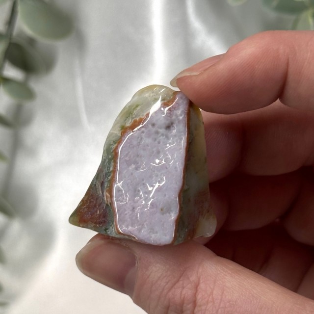 En stor fantastisk nydelig Sjø Jaspis orbikulær flamme fra Madagaskar på 1,585kg. Denne er ca 19cm høy. Det er den på bildene du får hvis du kjøper denne.