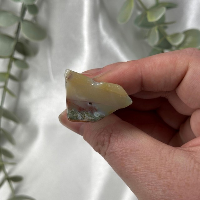 Lys Sjø Jaspis håndstein. Denne er 5,8x5x4,1cm og veier ca 165g. Det er denne på bildene du får hvis du bestiller denne.