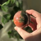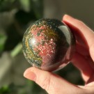 Nydelig Rainforest Jaspis/Grønn Rhyolitt kule på 224g og 5,6cm. Å se på nært denne kulen er bare helt MAGISK! Det er den krystallen du ser på bildene du får hvis du bestiller denne. Bildene er tatt i sollys.