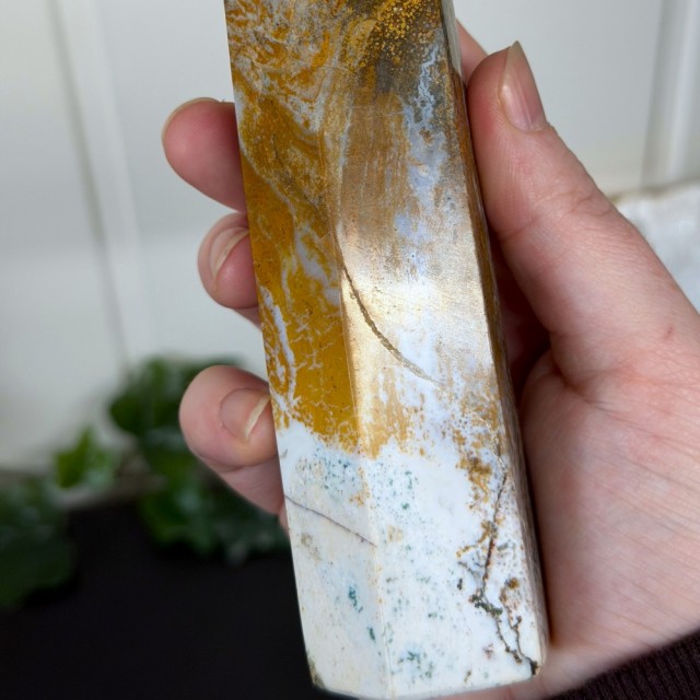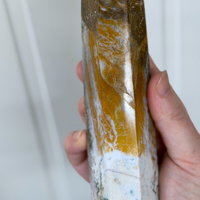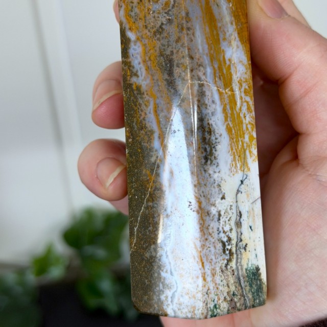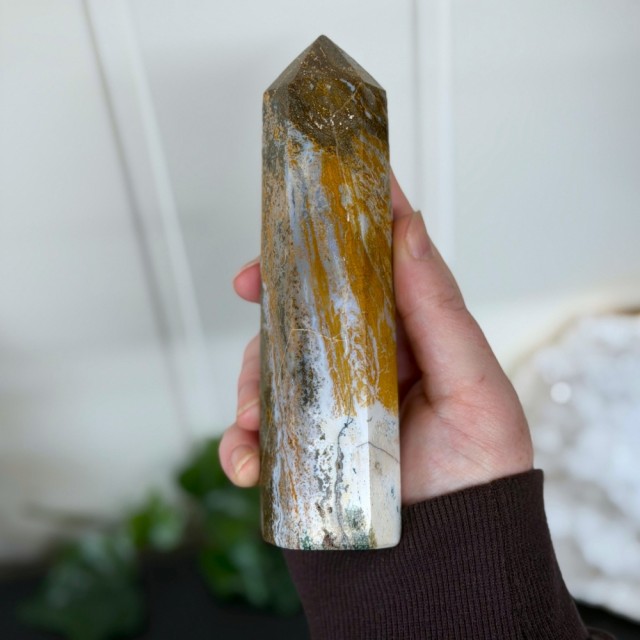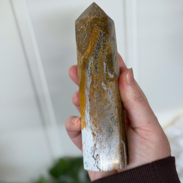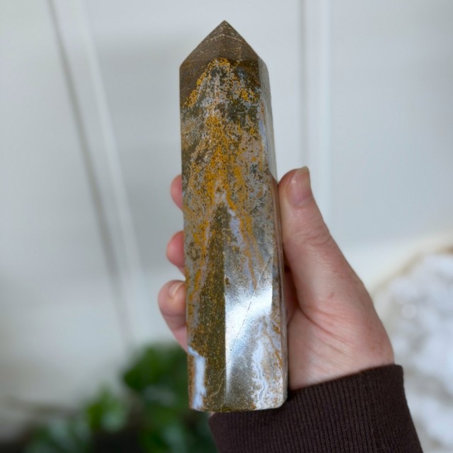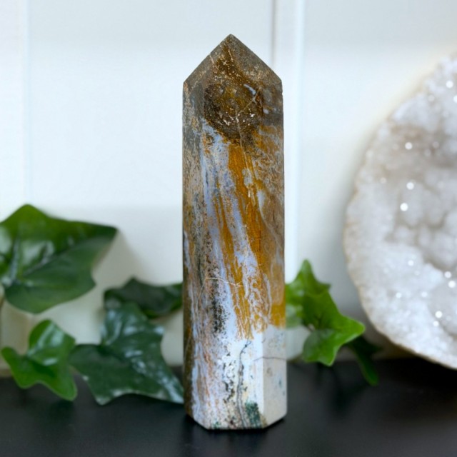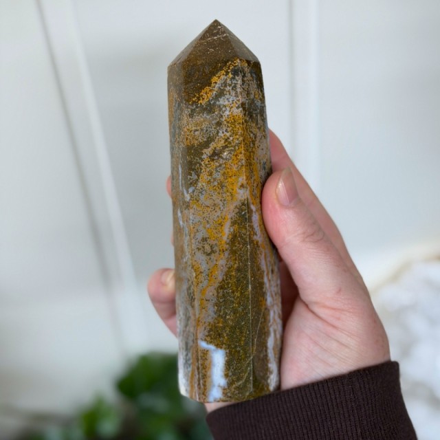 Sjø Jaspis er en krystall som bærer havets rytme og helbredende energi. De vakre sirklene og bølgene i steinen minner oss om at livet beveger seg i sykluser - og at vi finner styrke i å “flyte med strømmen” i stedet for å kjempe imot.
