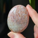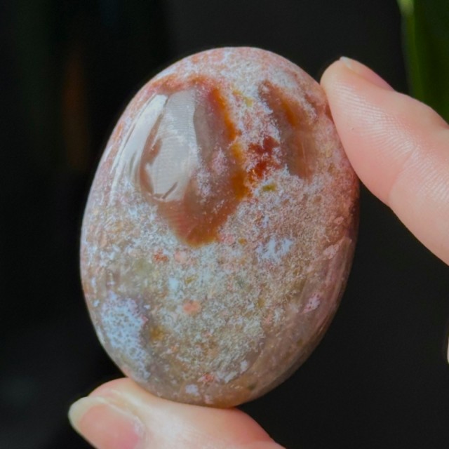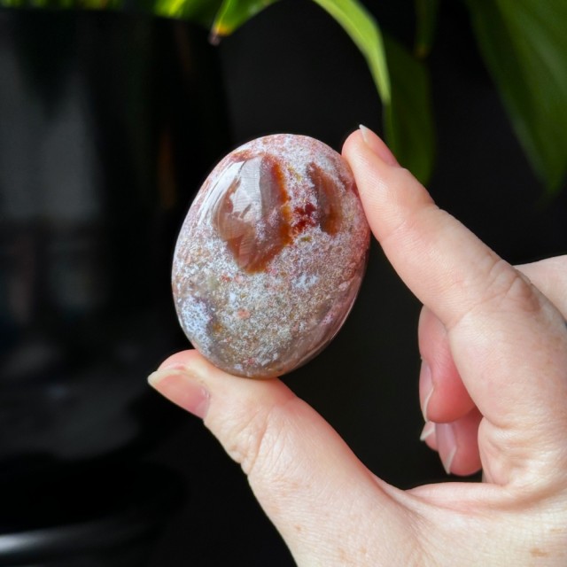 Nydelig Sjø Jaspis håndstein. Denne er 5,3cm lang og veier ca 66,2g. Det er den på bildene du får hvis du bestiller denne. Vær obs på at minimale små merker kan forekomme. Bildene er tatt under dagslys, produkt kan avvike fra bildene. Se nøye før kjøp.