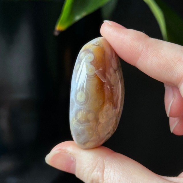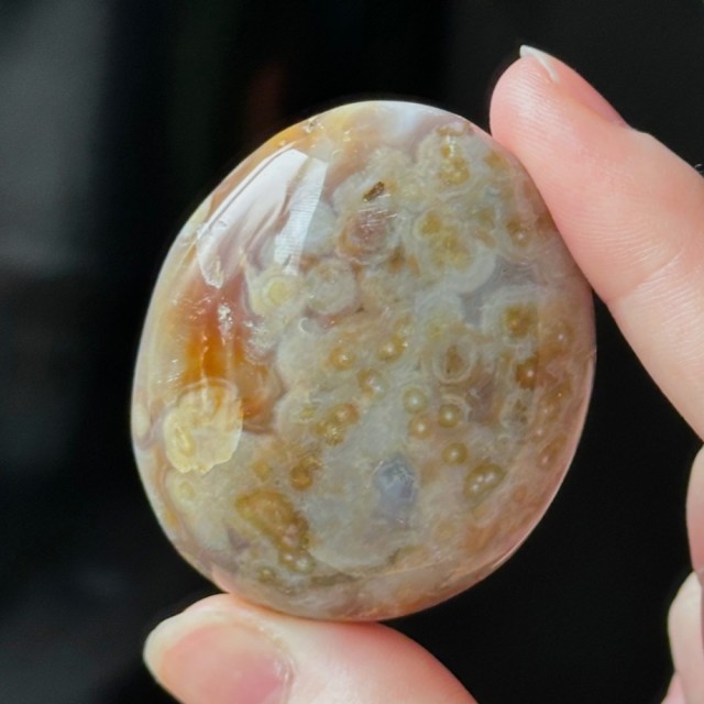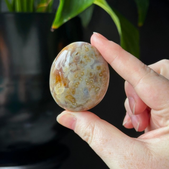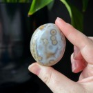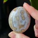 Orbikulær Sjø Jaspis håndstein på 5,7cm og veier ca 65g. Det er den på bildene du får hvis du bestiller denne.