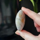 Orbikulær Sjø Jaspis håndstein på 4,4cm lang og veier ca 49g. Det er den på bildene du får hvis du bestiller denne.