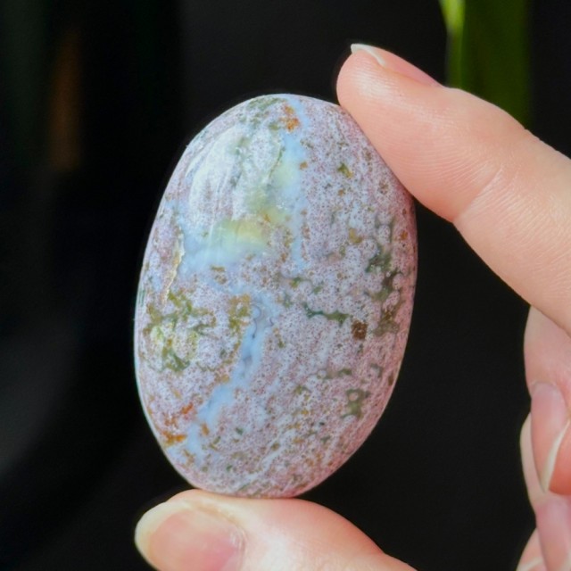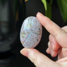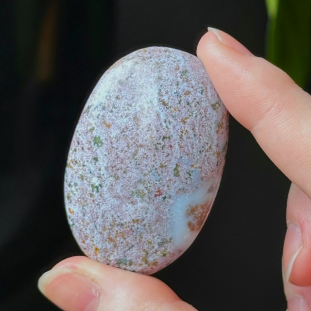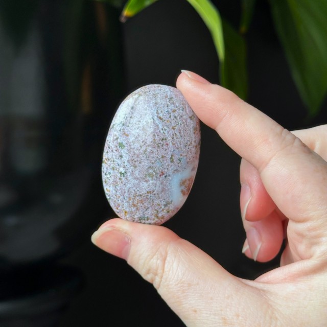 Nydelig Sjø Jaspis håndstein. Denne er 5,2cm og veier ca 45,8g. Det er den på bildene du får hvis du bestiller denne. Vær obs på at minimale små merker kan forekomme. Bildene er tatt under dagslys, produkt kan avvike fra bildene. Se nøye før kjøp.