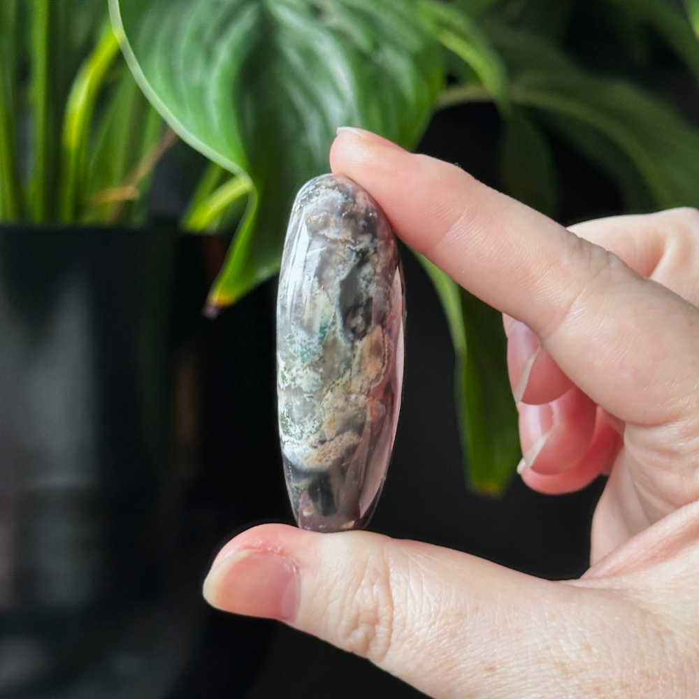 Som en blanding av jord og skog bærer Candy Jaspis grønn og brun harmoni. En pleiende stein for ro, balanse og kjærlighet - perfekt for å finne styrke i hverdagen. Denne er 6,4cm og veier ca 377g.