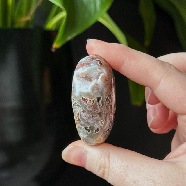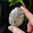 Orbikulær Sjø Jaspis håndstein på 4,4cm lang og veier ca 49g. Det er den på bildene du får hvis du bestiller denne.