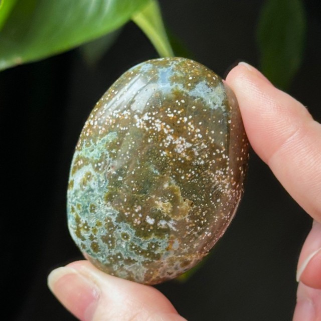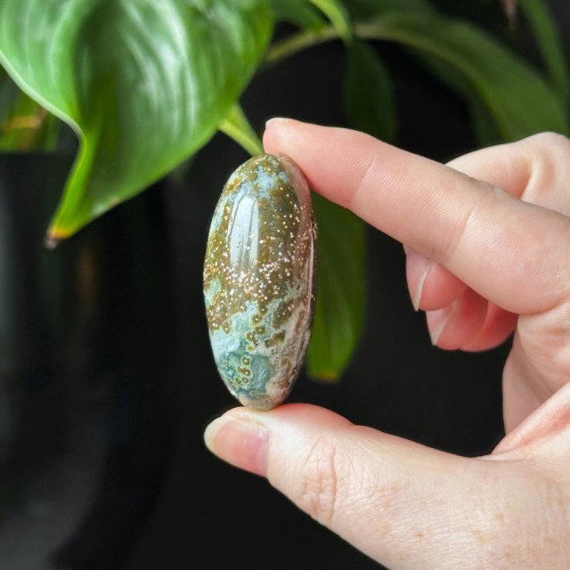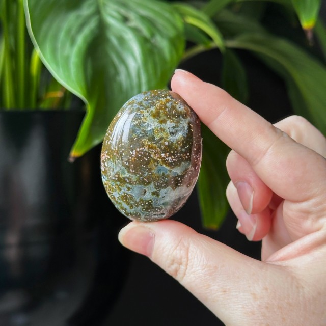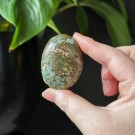 Nydelig Sjø Jaspis håndstein. Denne er 5,2cm lang og veier ca 68,2g. Det er den på bildene du får hvis du bestiller denne. Vær obs på at minimale små merker kan forekomme. Bildene er tatt under dagslys, produkt kan avvike fra bildene. Se nøye før kjøp.