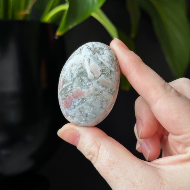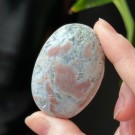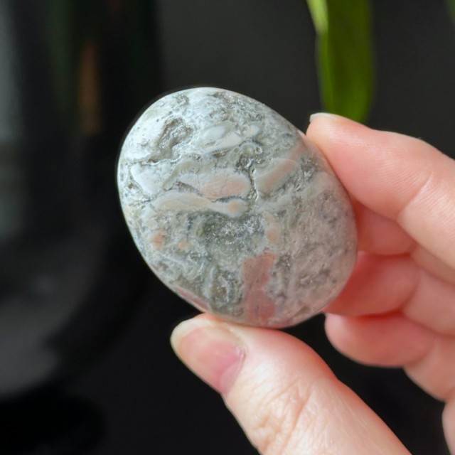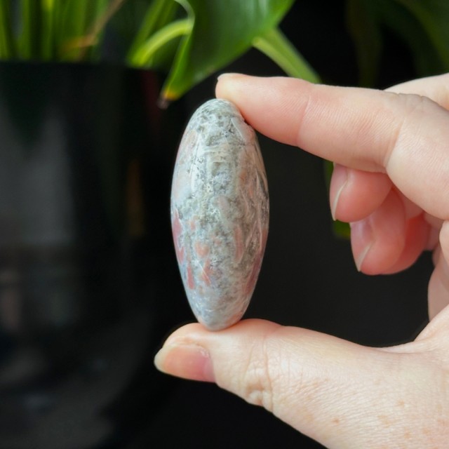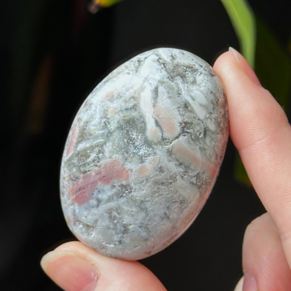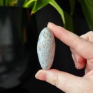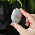 Nydelig Sjø Jaspis håndstein. Denne er 5,4cm lang og veier ca 60,6g. Det er den på bildene du får hvis du bestiller denne. Vær obs på at minimale små merker kan forekomme. Bildene er tatt under dagslys, produkt kan avvike fra bildene. Se nøye før kjøp.