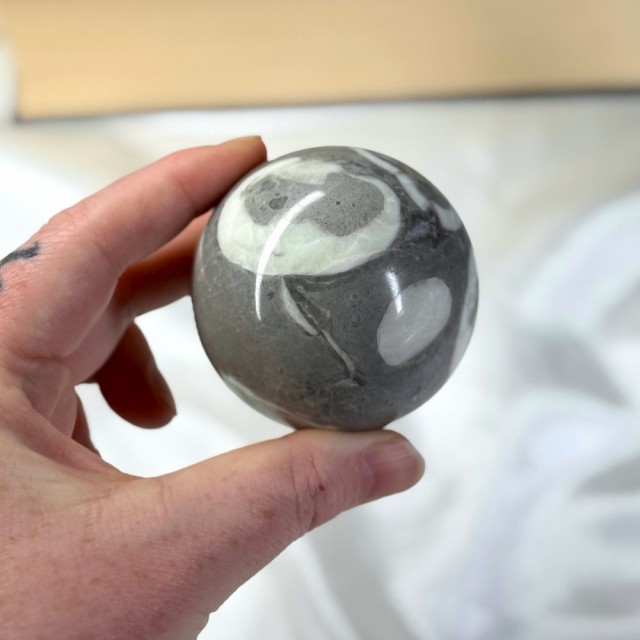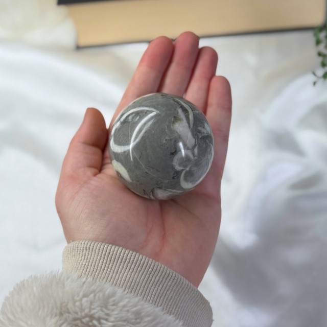 Kombinasjonen av fossilerte skjell og mineraler gir en nærende energi som kobler deg til Moder Jord og naturens rytmer. Den minner deg på at alt går i sykluser og at du alltid kan finne balanse igjen.