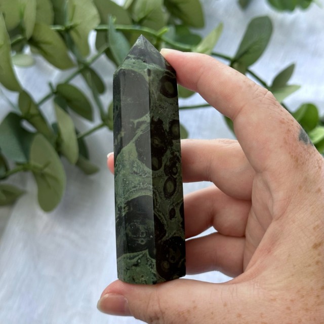 Nydelig Orbikulær Sjø Jaspis tårn på 11,5cm og veier ca 147g.