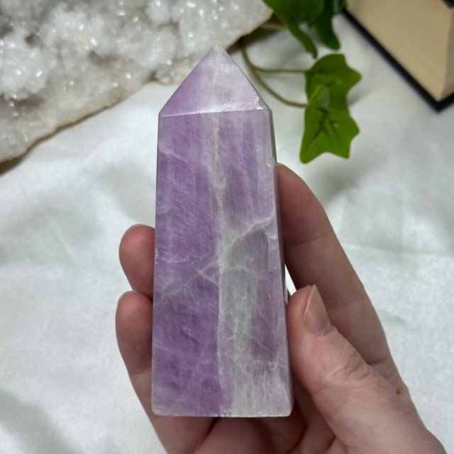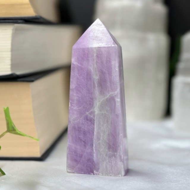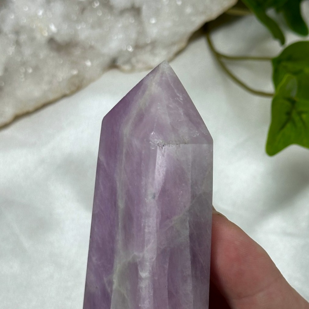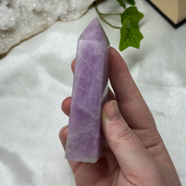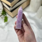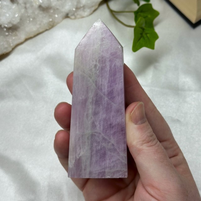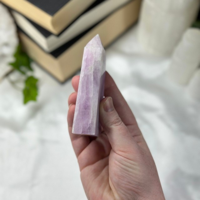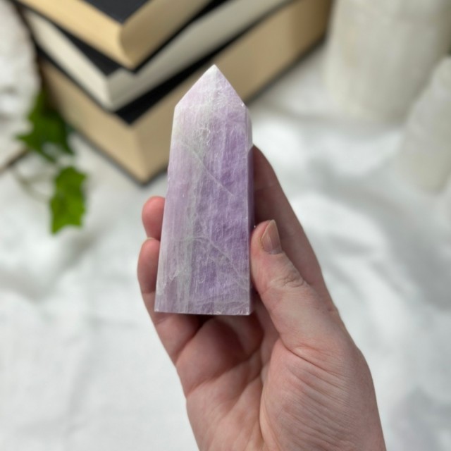 Blå Aragonitt er en beroligende stein som minner om stillheten i havet. Den lindrer stress, styrker kommunikasjon og bringer fred, klarhet og egenkjærlighet. Dette tårnet er 101g og er 9,5cm høyt.