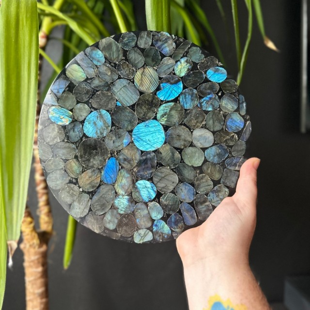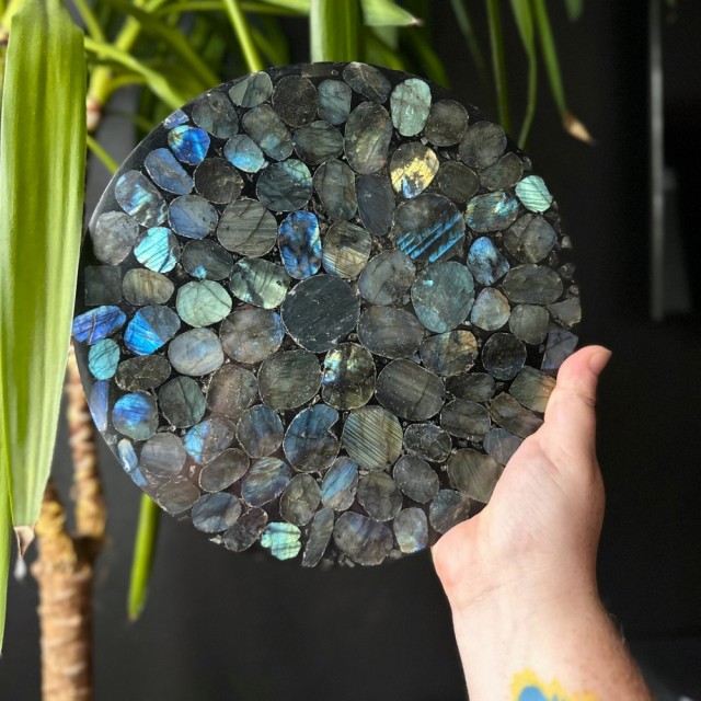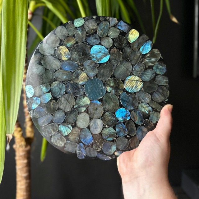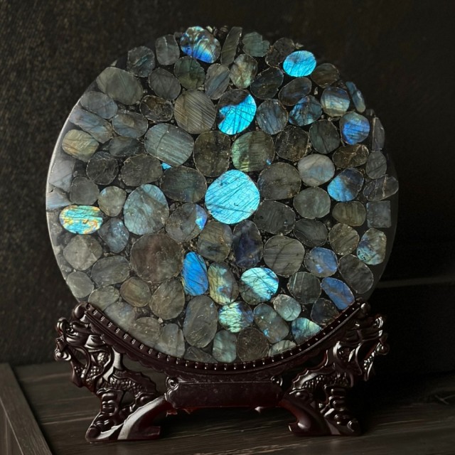 Stor Labradoritt Pynteskive m/stativ 25,5cm