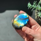 Flashy Labradoritt håndstein. Denne er 6,5x4,4x1,7cm og veier ca 77g. Naturlige merker forekommer! Det er denne krystallen du ser på bildene du får hvis du bestiller denne.